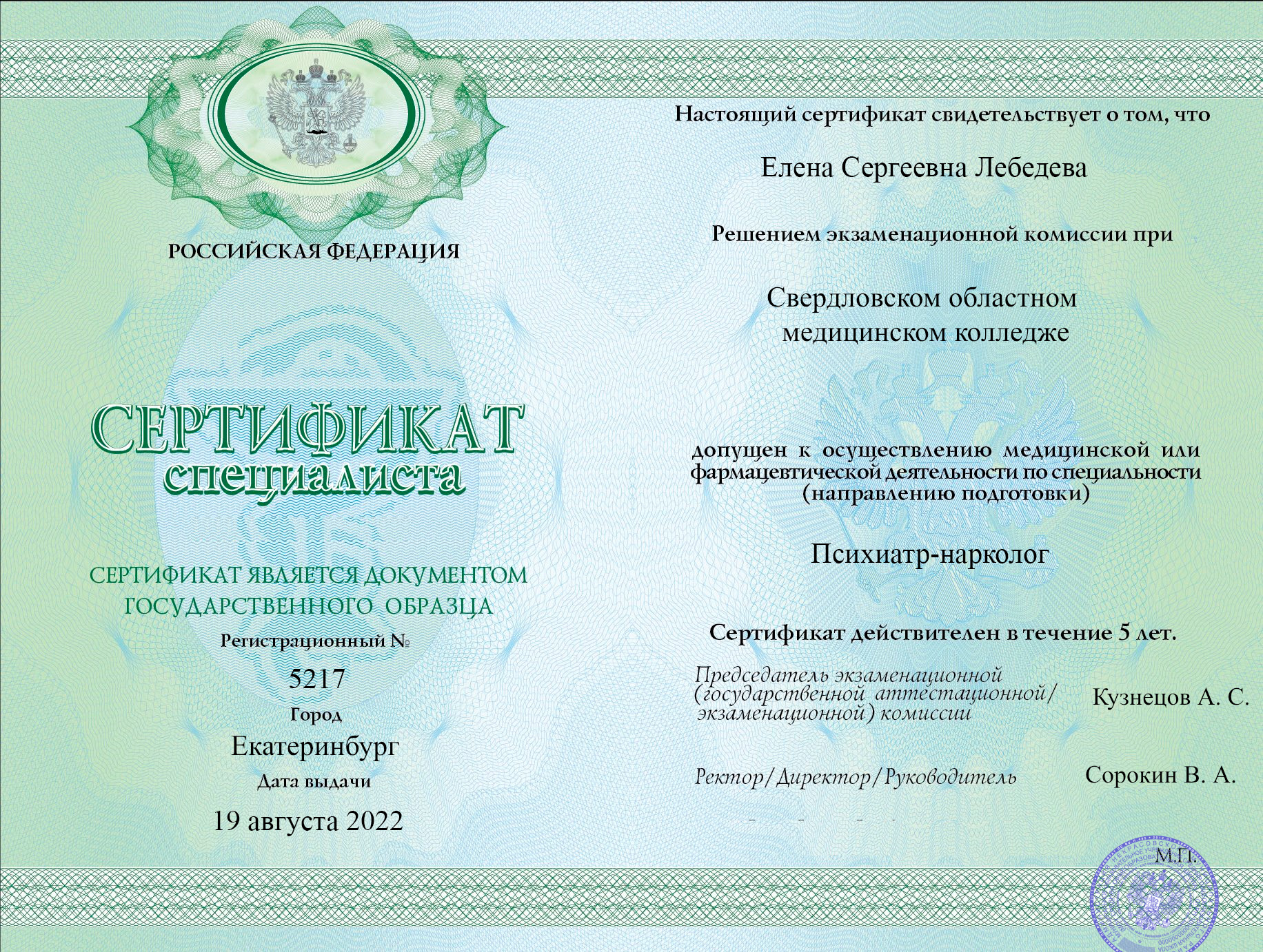 Елена Сергеевна Лебедева врач нарколог клиники доктора Стукаловой в Алатыре